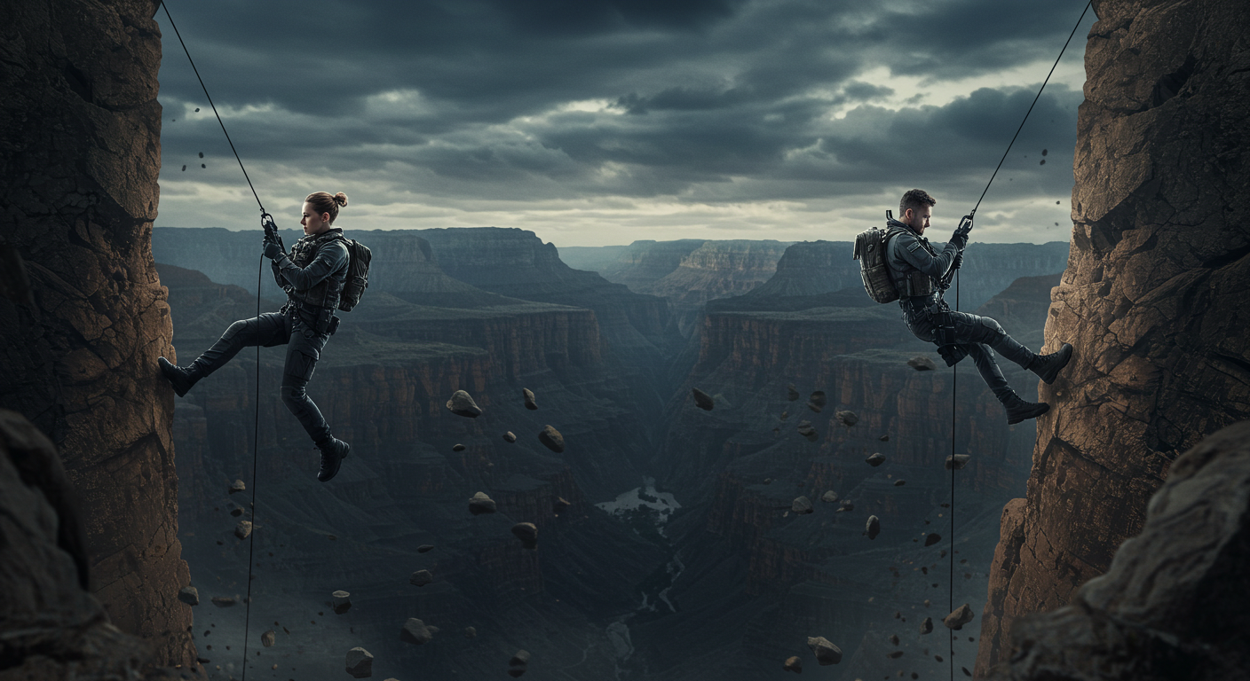 ‘더 캐니언’은 단순한 SF 액션 영화가 아닙니다. 두 명의 요원이 협곡을 사이에 두고 대치하는 구조이지만, 시간이 지남에 따라 서로의 존재를 감지하고 교감하는 과정을 담아냅니다. 이 과정에서 밝혀지는 협곡의 비밀은 영화의 몰입도를 한층 높여줍니다.